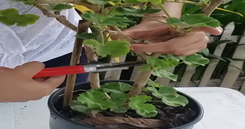 Ahora comenzamos a limpiar las hojas secas, lo que fomentará la aparición de nuevas hojas en el tallo. Esto debe hacerse con frecuencia, ya que las hojas inferiores suelen secarse, y es necesario estimular al geranio para que produzca nuevas hojas saludables. Además, debemos eliminar los restos florales viejos para que surjan nuevos. Recuerda cuidar la planta: le encanta el sol directo en la mañana, sombra por la tarde y semisombra en verano. El riego será dos veces por semana y en invierno solo una vez. Los geranios son plantas que, cuando reciben los cuidados adecuados, pueden convertirse en el centro de atención de cualquier jardín o balcón. Aunque parecen delicados, en realidad son bastante resistentes y agradecidos con quienes les dedican un poco de tiempo. Una de las claves para que luzcan siempre verdes y llenos de flores es prestar atención a su crecimiento y a sus necesidades de luz y nutrientes.