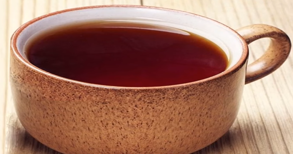 Taza de cerámica artesanal llena de té de muitle caliente